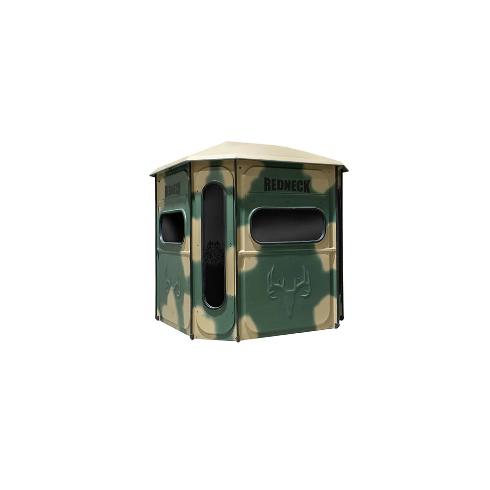 \nBlind can be mounted to Redneck’s heavy-duty powder-coated steel stands or their unique trailer stand or blind sled. The blind comes completely assembled. Instructional DVDs and printed instructions are included to ensure safe setup. Blind is made in USA.